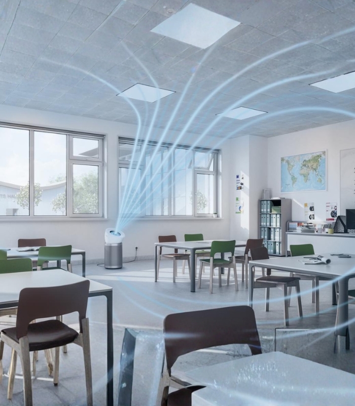 این دستگاه بهطور ویژه برای اتاقهای بزرگ تا حدود 100 متر مربع طراحی شده است؛ جایی که تصفیهکنندههای معمولی کارایی لازم را ندارند. سیستم پیشرفته گردش هوا با طراحی آیرودینامیک مخروطی، هوای پاک را بهصورت یکنواخت و عمیق در کل فضا پخش میکند و تضمین میکند که هیچ نقطهای از اتاق بدون تصفیه باقی نماند.