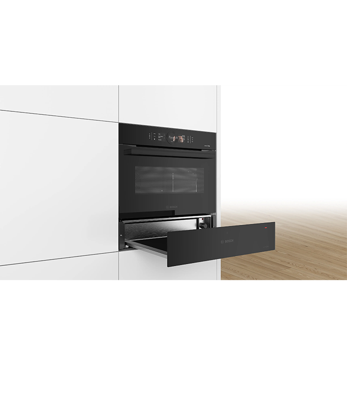 کشو گرمکن بوش مدل BIC830NC0 یکی از محصولات حرفه‌ای و لوکس سری 8 بوش است که در کشور اسلواکی تولید شده و طراحی آن به رنگ مشکی کربنی با پوشش مات است. این دستگاه علاوه بر ظاهری زیبا، کارایی چندمنظوره‌ای دارد که شامل گرم نگه داشتن غذا، گرم کردن ظروف، پخت آرام و حتی یخ‌زدایی مواد غذایی می‌شود.