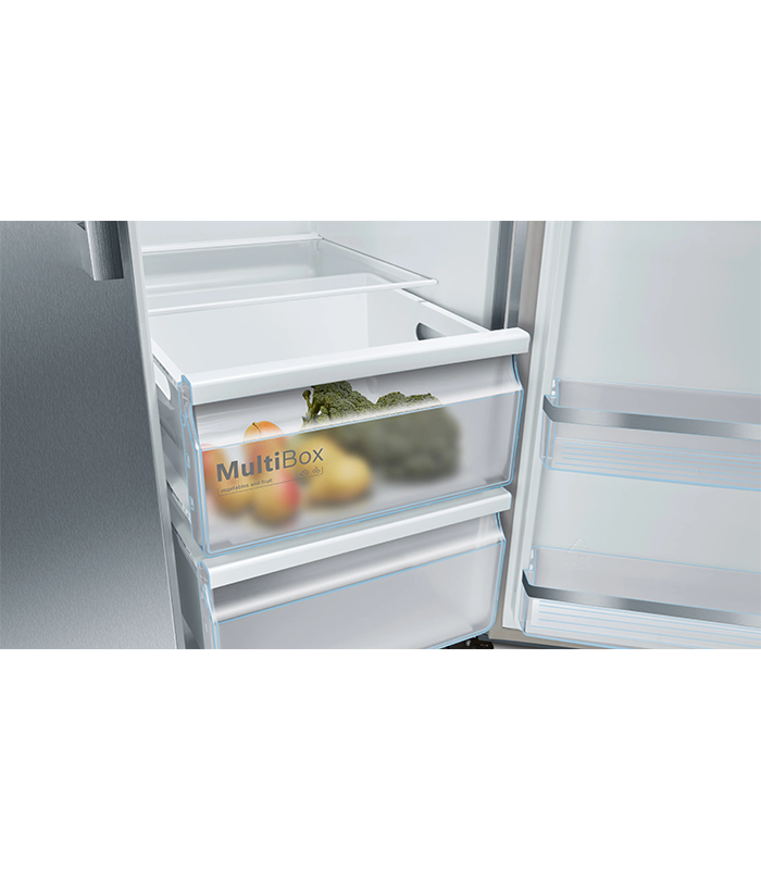 یخچال ساید بای ساید بوش مدل KAG93AI304، از سری 6 محصولات این شرکت معتبر، ترکیبی از طراحی مدرن و امکانات پیشرفته را ارائه می‌دهد. بدنه استیل ضد خش این مدل علاوه بر زیبایی و مقاومت، با ظاهری لوکس محیط آشپزخانه شما را جذاب‌تر می‌کند. این یخچال با ظرفیت کلی 598 لیتر (366 لیتر یخچال و 166 لیتر فریزر) فضای کافی برای ذخیره انواع مواد غذایی را فراهم می‌کند.