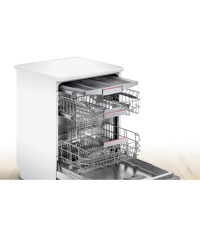 ماشین ظرفشویی SMS4HCW48E دارای قابلیت تنظیم ارتفاع سبدها است که امکان بارگیری ظروف بزرگتر و متنوعتر را به شما میدهد. همچنین سبد مجزای قاشق و چنگال، نظم بیشتری در چیدمان ظروف فراهم میکند.