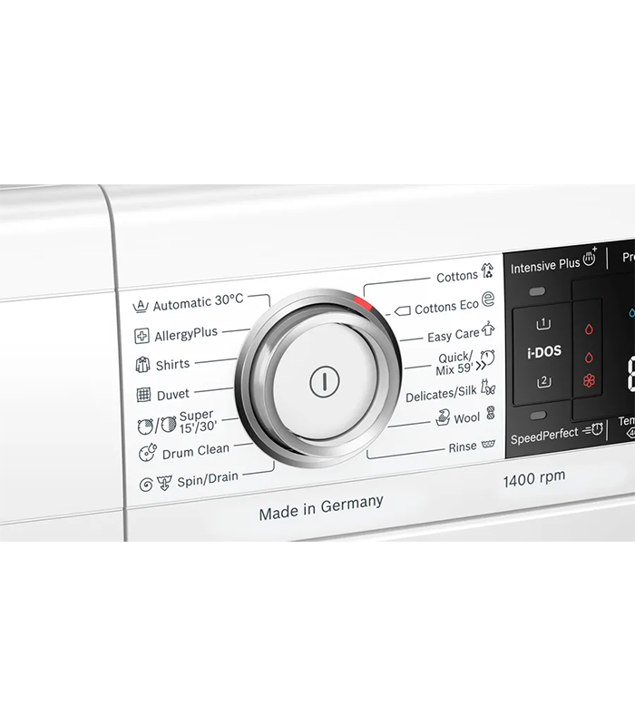 - i-DOS (سیستم تنظیم اتوماتیک مصرف مواد شوینده): با این سیستم، مقدار دقیق مواد شوینده به صورت خودکار و با توجه به نوع و میزان لباسها وارد چرخه شستشو میشود که باعث صرفهجویی در مصرف مواد شوینده، آب و انرژی میگردد.