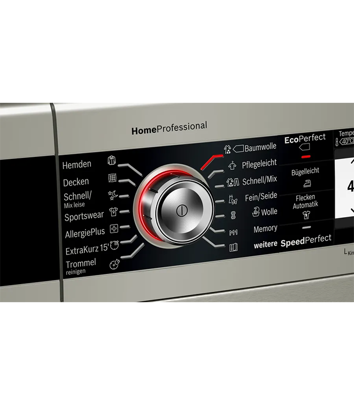 ابعاد این دستگاه شامل ارتفاع 848 میلیمتر، عرض 598 میلیمتر و عمق 590 میلیمتر است و دارای نمایشگر ComfortControl Plus برای نمایش اطلاعات مصرف برق و آب میباشد که عملکرد ساده و کاربردی را ارائه میدهد.