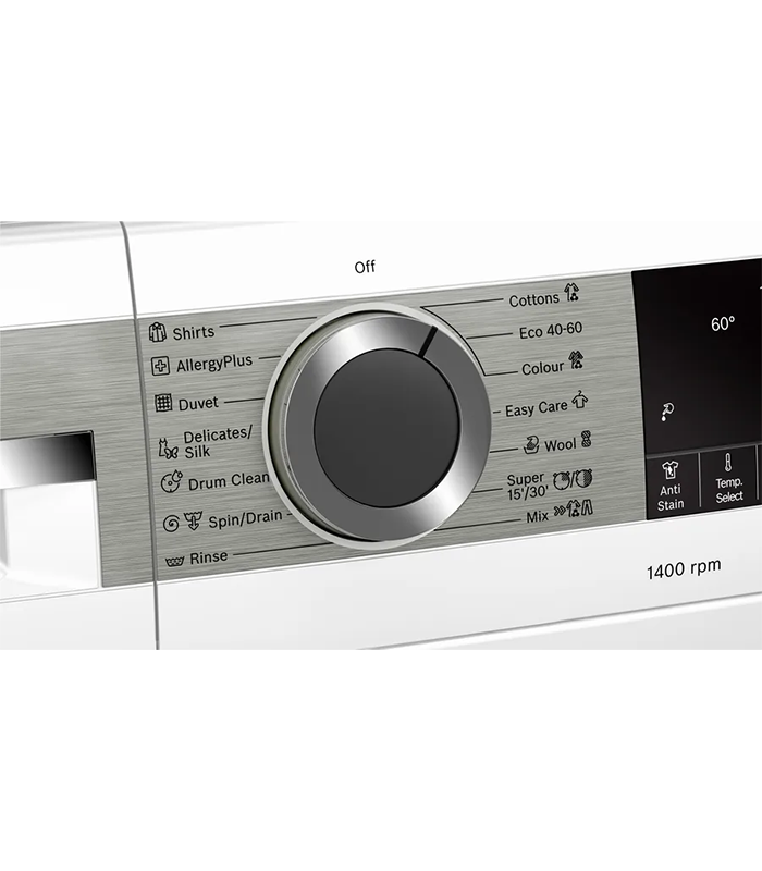 ماشین لباسشویی بوش مدل WGA254X0ME با قابلیت AntiStain میتواند چهار نوع لکه رایج شامل لکههای چربی، خون، عرق و نوشیدنیها را شناسایی کرده و بهطور مؤثر از بین ببرد. این برنامه به کاربر این امکان را میدهد که بدون نیاز به استفاده از مواد شوینده اضافی، لباسهای خود را با کیفیت بالا شستشو دهد.