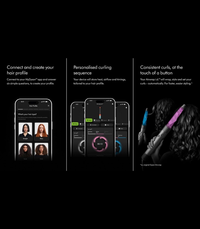 📱 اتصال به اپلیکیشن MyDyson برای ساخت پروفایل اختصاصی مو و تنظیم خودکار دما، سرعت و زمان.