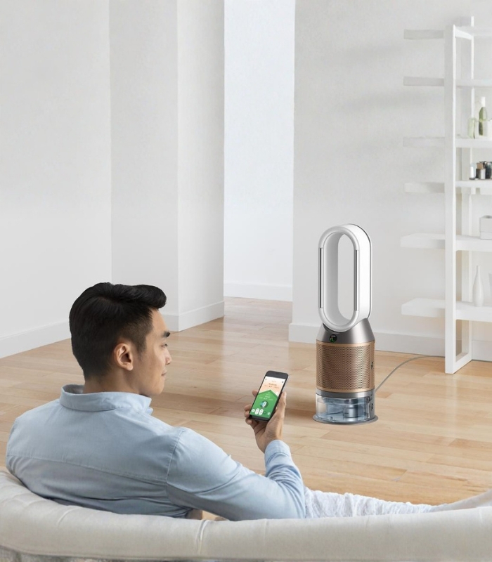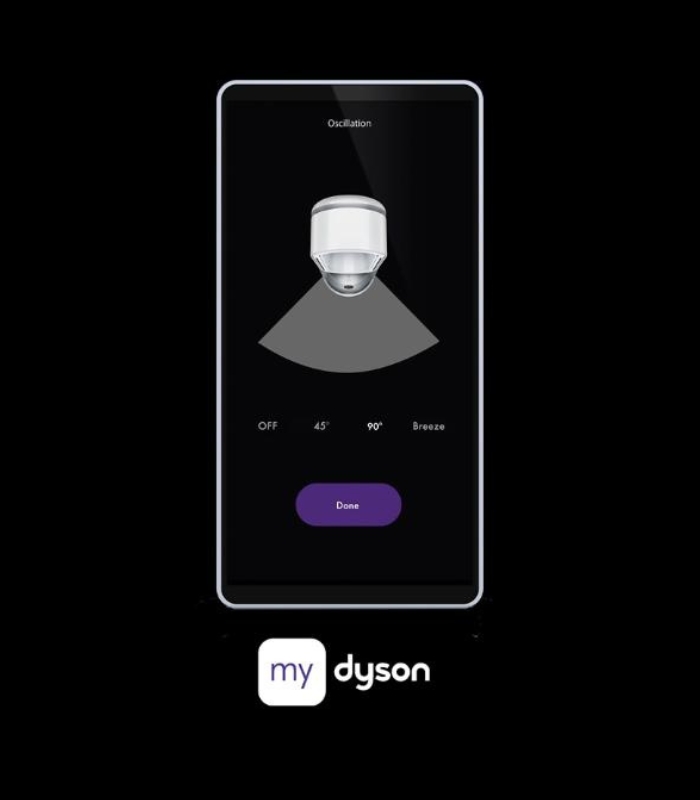 کنترل هوشمند: از طریق اپلیکیشن MyDyson امکان مانیتورینگ کیفیت هوا، تنظیمات زمانبندی، گزارشهای شخصی و کنترل از راه دور فراهم است. همچنین امکان کنترل صوتی با دستیارهای هوشمند وجود دارد.